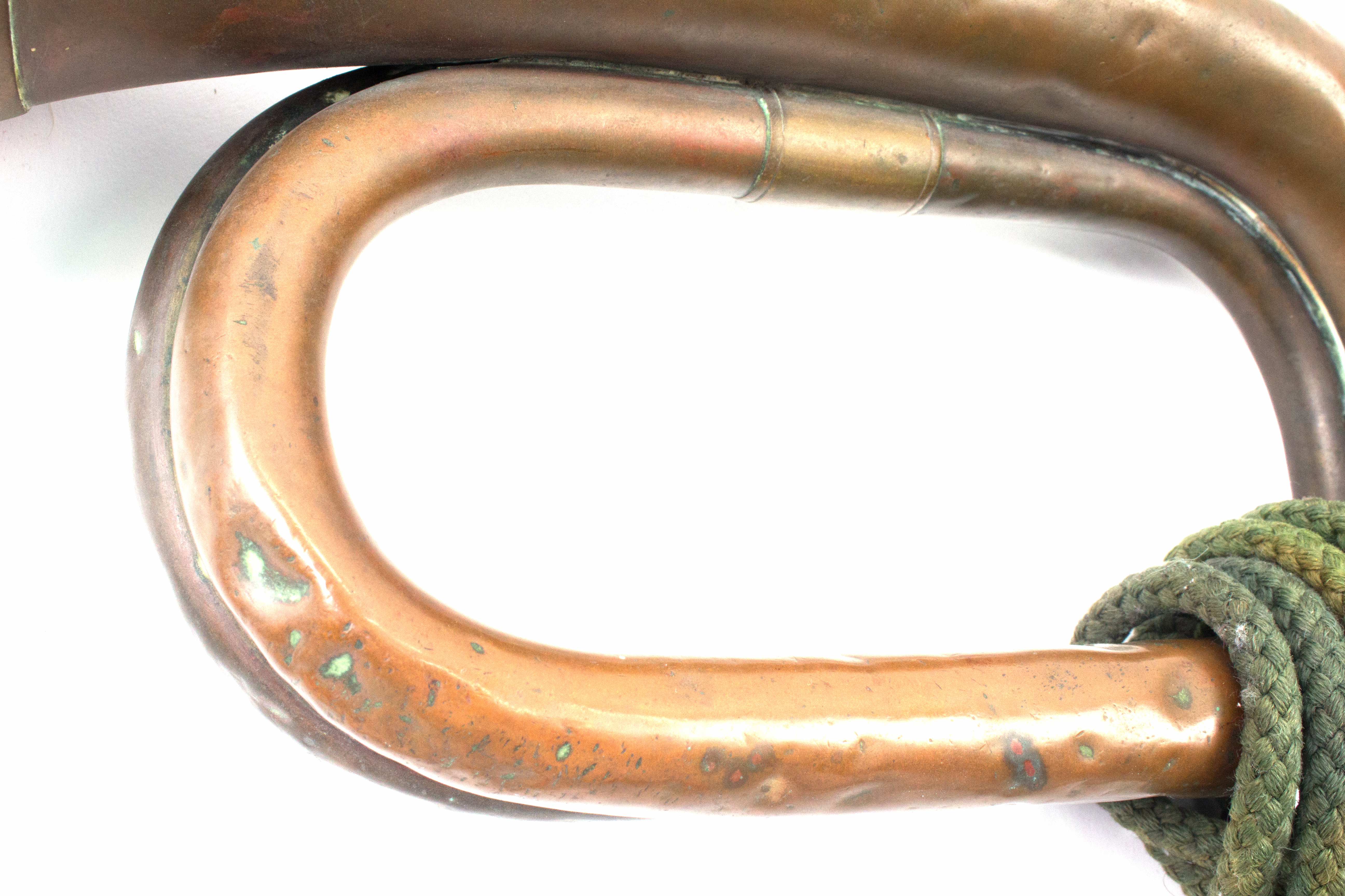 English: Bugle given to Nursing Sister Elizabeth (Bessie) Rennie Hay, at the end of the Anglo Boer War material- copper and brass; with cord attached maker- Henry Potter, 30 Charing Cross, London markings- W D - Henry Potter and Co - 30 Charing Cross, London - C and M 1888 - 1098., .OASC, 06. |